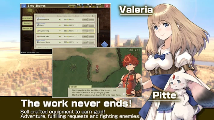 Adventure into dungeons, get materials by gathering and looting monsters, then craft high quality equipment. Whether you equip them or display and sell them in your shop is up to you. Find other party members at the Guild and fulfill requests to progress through the story and earn rewards. There are 14 classes, faith selection, and passive skills that grant you free character customization!