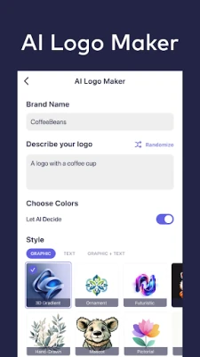 AI-Powered Design Tools: Let advanced AI technology guide you to create business logos, brand logos, and custom designs tailored to your style and needs.