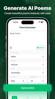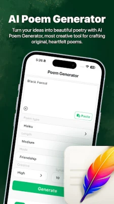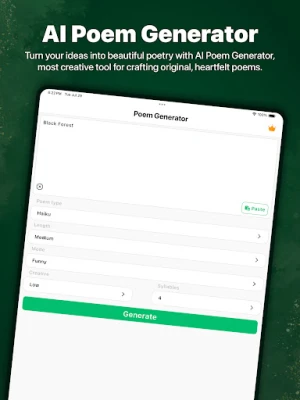 - Instant Results: Generate poetry faster than ever, with just a tap of a button.