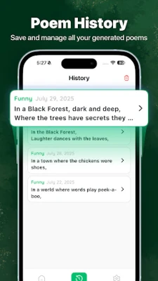 Missed out on a great poem? No worries! Our History feature stores all your previously generated poems, so you can revisit and enjoy them anytime, anywhere.