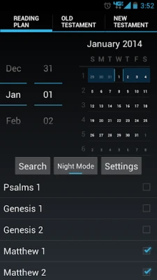 Features - KJV - Daily Bible reading plan - Read the entire Bible in one year - Keep track of your Bible reading progress - Take notes chapter by chapter - Search - Night reading mode